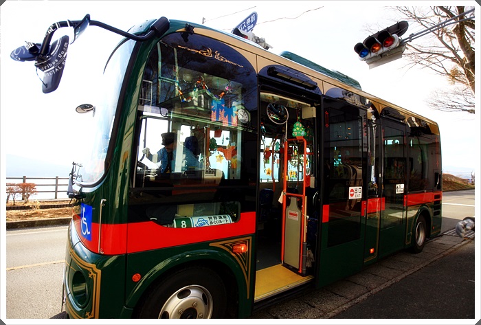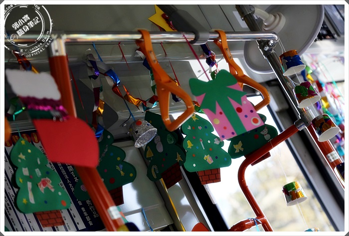 | 因為我們是12月份的時間去的,連公車上面都裝飾滿滿的聖誕節氣氛,好有趣,司機大哥人相當的客氣。 |