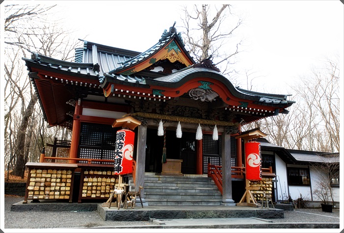 | 在山中湖最熱鬧的街道通往河口湖方向的交叉點有一間神社還滿值得走走看看的。 |