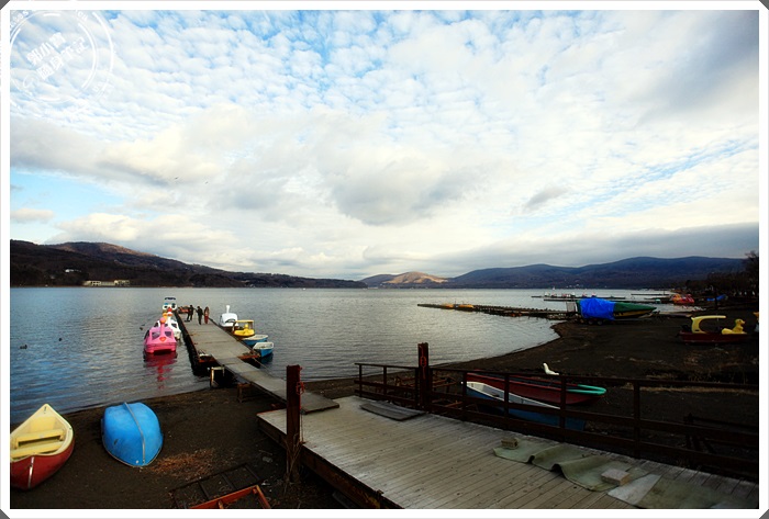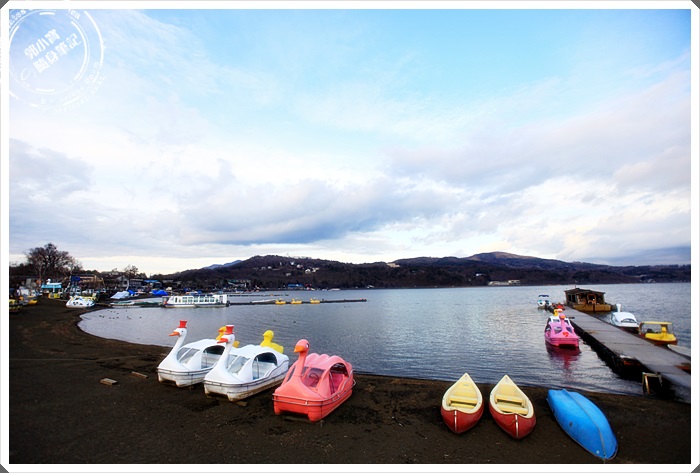 | 大部分的乘船體驗跟天鵝湖船都聚集在山中湖最熱鬧的這一條馬路上,我們從下車的地方走到這邊,沿路停停走走拍拍,繞了大概1/5的山中湖,花了將近6小時的時間,差一點搭不到最後一班公車,差點嚇的屁滾尿流,所以公車時間一定要查好。 |