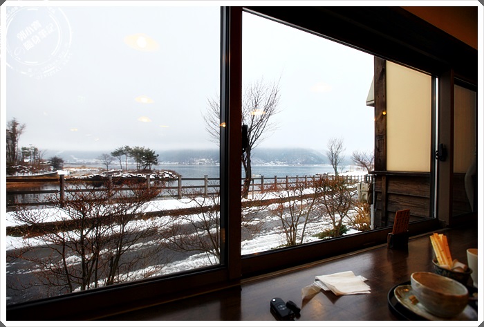 | 窗外可以看到美麗的河口湖,這一個喝熱茶放鬆欣賞美景的好座位。 |