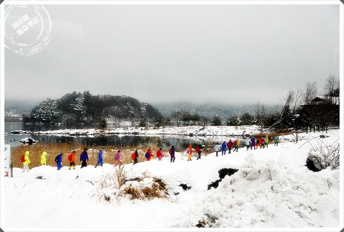 | 其實除了我們以外好像還有專門來西湖健行的團體,西湖是真的還滿美麗的,下雪的美景跟河口湖還有山中湖都有著不一樣的感覺,但是建議如果是下雪的時候畢竟還是部要下來步行,因為西湖跟精進湖的人煙真的太稀少了,很容易發生危險求助無門,冬天的時候建議搭乘觀光巴士繞一圈看看就好,觀光巴士繞西湖大概也需要10幾分鐘的車程。