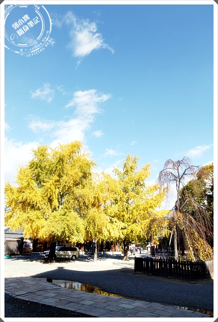 瞬間看到一旁的兩顆大銀杏樹,銀杏盛開著好漂亮啊!!! 台灣很難有這樣的大銀杏就在路邊增添風情的。