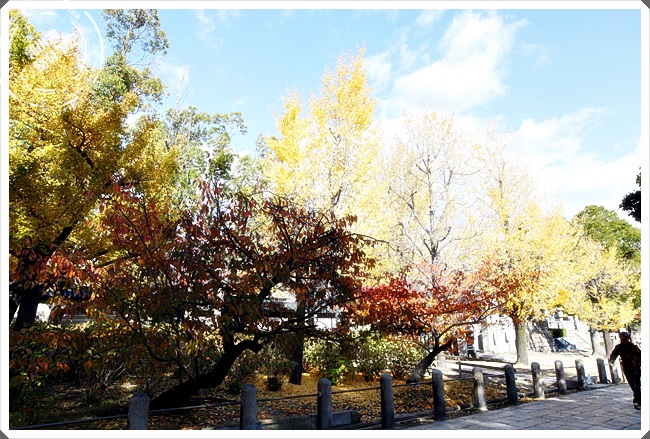 大清早的到達四天王寺就能感受到那恬靜的感覺,真的有種與世無爭的FU耶,不過因為去的時候正值楓葉盛開的時候,所以當然還是要看一下這邊的楓葉,正門口這邊基本上沒有什麼樹木。