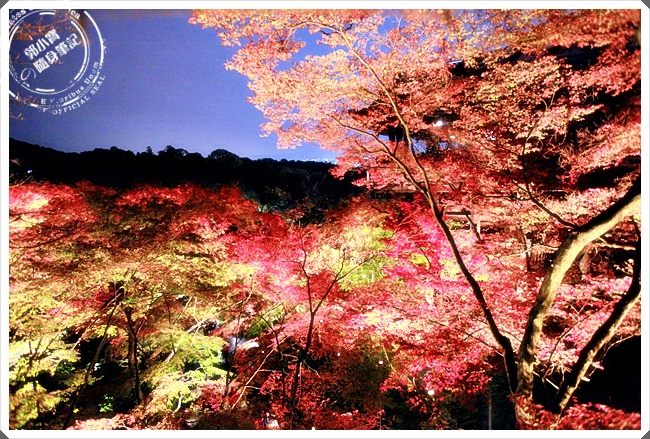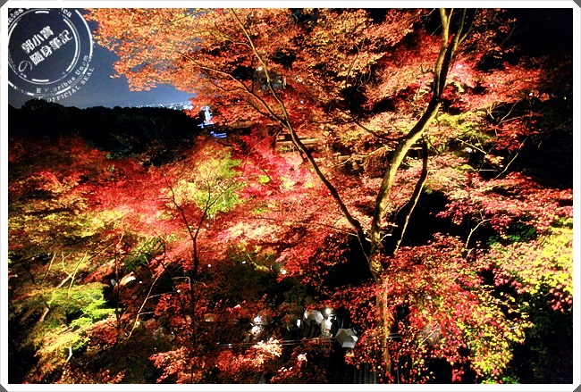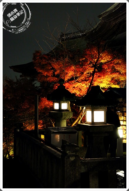 燈光油下往上打在紅葉上真的超漂亮的,整片樹林有了不一樣的美,尤其清水寺這邊的楓葉的量還滿多的,加上本身的古老建築跟整個夜色,真的會讓人一拍起照來都停不下來。