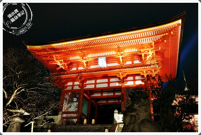 沿著階梯走下來在的風夜也很壯觀,可以仰頭看到超有震撼力的清水寺本殿,但是也因為昏暗的關係,所以進行的速度還是滿快的。