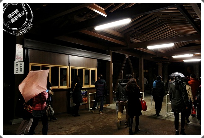 夜楓的售票口跟早上並不一樣,是直接拉到大門口這邊購票,簡單的幾個帳篷搭建起來的,因為人潮真的是太多了,加上天色又相當的昏暗,所以才會把售票口拉到大門口,因為一整排的帳篷大概有10來個售票人員,加上其他的導引工作人員,所以速度就會相當的快,方便紓解人潮。