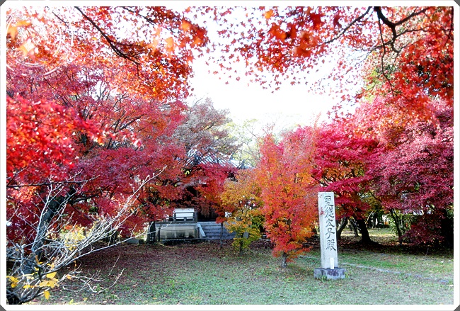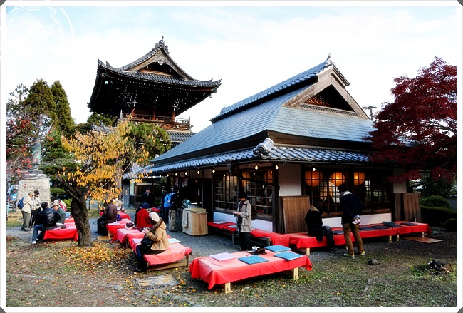 清涼寺主殿的右後方區快相當的隱密,加上不管是建築還是美景藍天都相當的好拍,重點拍起來背景都非常得乾淨好看,色彩相當的豐富又鮮豔,而且又不用人擠人搶角度,可以開心的拍道你滿意為止,又不用門票費,推薦給大家的私房紅葉小景點。