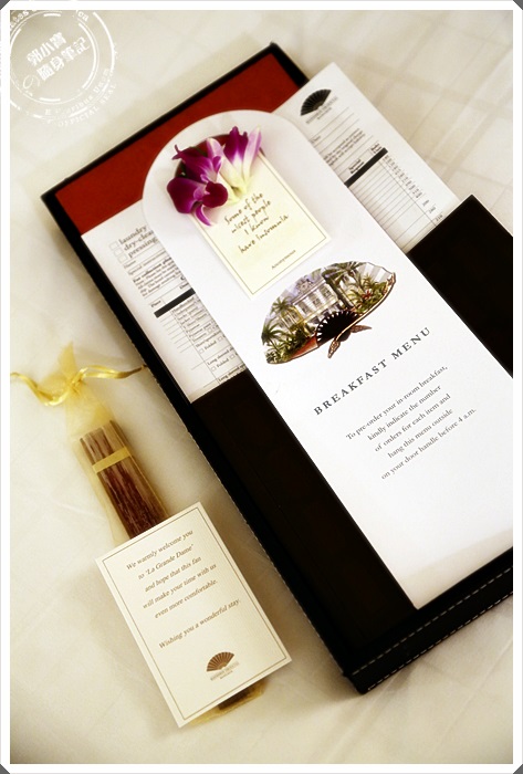 下午回到房間可以看到床鋪上放著早餐的點菜單,這早餐送到客服的話是額外的付費服務,