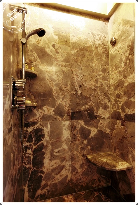 淋浴間是整間大理石砌成的,水壓非常的牆,沖起澡來特別的舒暢阿!