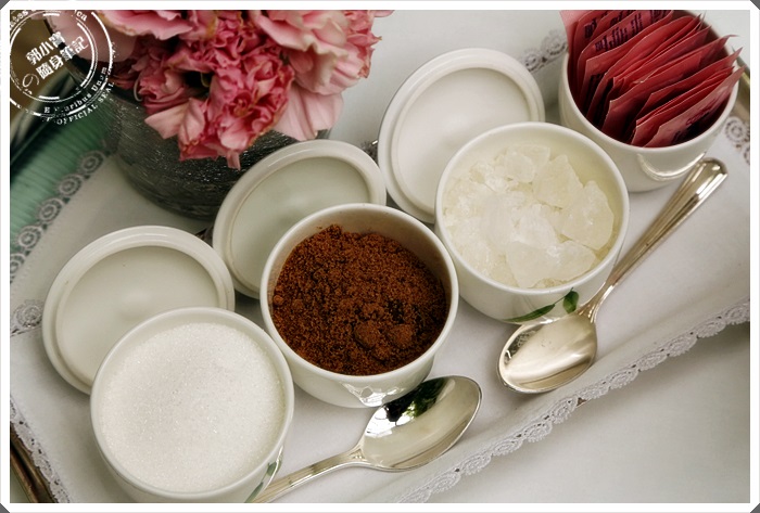 糖罐也準備的非常的齊全,幾乎應有盡有,還有各式各樣的醬料,從甜桔醬到草莓醬還有藍莓醬通通都有,當然還有不能錯過的鮮奶油。