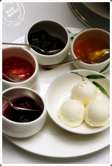 最上面的一層有著下午茶的精神,擺放著司康跟水果蛋糕,泰國文華東方的司康吃起來的麵甜香很濃郁,抹上果醬上的滋味更是令人難忘,那咀嚼中的麵香與果醬的資要真的是回味無窮阿,來到文華東方酒店當然不能錯過就是玫瑰果醬,當然要趁這次好好的大吃一頓,泰國文華酒店的玫瑰果醬吃起來跟香港的有點不太一樣,泰國文華果醬吃起來偏酸,香港文華的玫瑰醬吃起來偏甜,但是相同的是玫瑰香氣都非常的濃郁,