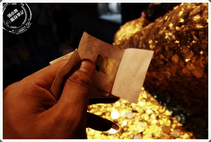 | 原因都來自於這一張小小金箔紙,只要你有買貢品的話,都會有附上好幾張金箔紙,只要把紙張撕開就可以看到裡面有個小金箔,再把金箔貼上就可以了。 |