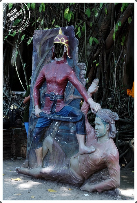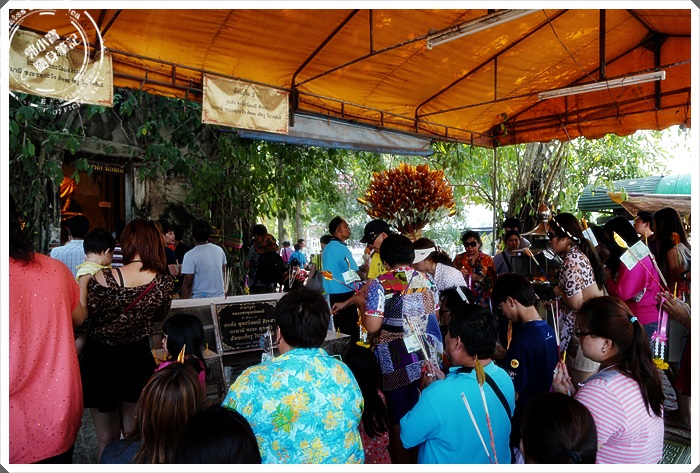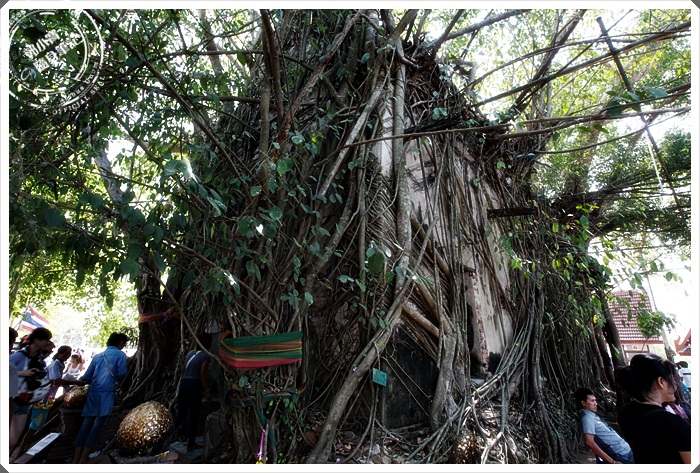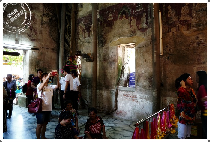 這次旅程雖然式自助旅行,但是說穿了曼谷玩了幾天後,還是會想往曼谷近郊的地方跑,但是無奈泰國人的英文基本上都不熟練,加上我自己的英文也是破的可以,但是又想到安帕娃走走看看,所以最後決定參加了YUSABAY的各項一日遊,說真的不只是服務很好以外,而且非常的便宜還有配備中文導遊,免去了我們許多麻煩,加上YUSABAY的老闆是台灣年輕人,所以溝通起來非常的方便,YUSABAY本身也有民宿,下次應該來住住看YUSABAY的民宿,據說品質也非常的棒,門口就是捷運站,話說參觀了鐵道市場後,接下來趁著在水上市場的空擋間,我們來到了行程中的樹中古寺,也很多人稱之為樹中廟,是安帕瓦當地滿著名的一間寺廟,跟著YUSABAY的好處就是,中文導遊會教我們祭拜的規矩,泰國的廟非常的多,但是規矩也很多,同行還有泰國通人榮,所以我們就這樣輕鬆的被帶領到了目的地。