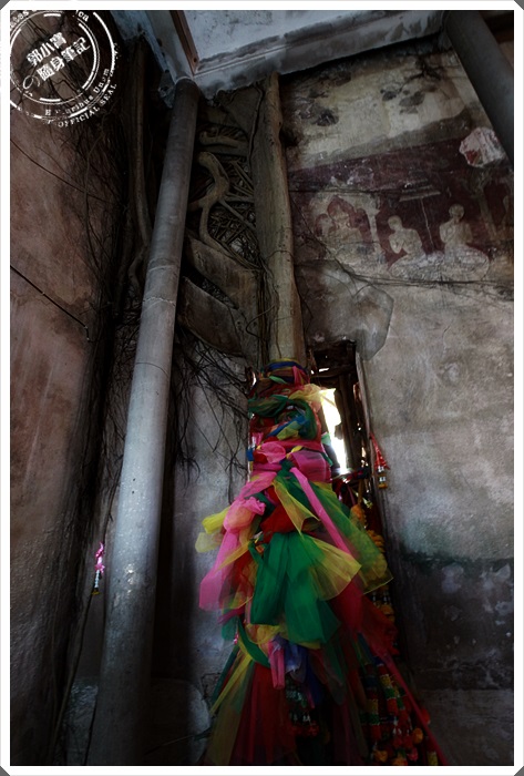 | 連屋內都有樹根扎營了,難怪會被稱為樹中廟,樹上綁了很多彩帶,應該也是代表祈福的意思吧 |
