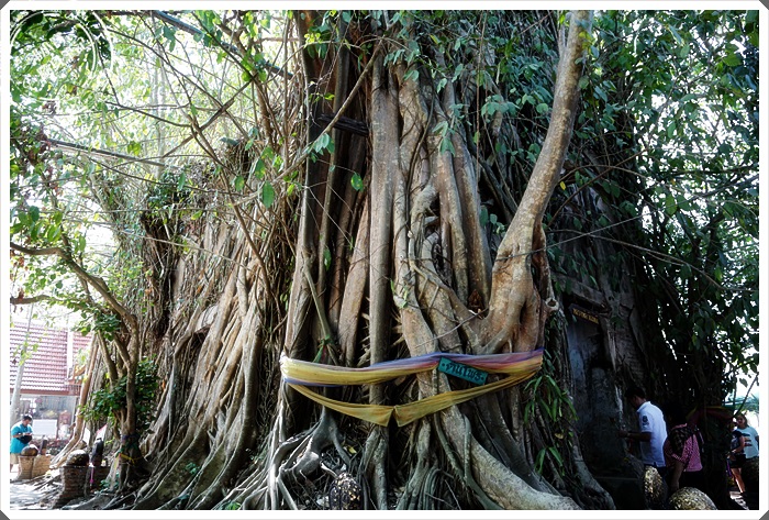 | 後面這就是傳說中的樹中廟,也有人說是樹中古寺,不管怎樣稱呼意思都是差不多的,第一眼看到的時候真的感覺它就是一顆樹而已,要不是一開始讓我就知道裡面有寺廟,我還真的看不太出來,這間小廟幾乎被樹給包圍了,也很像是樹本身被開了大洞,所以有一個空間可以蓋廟,不管如何真的都算滿特別的寺廟。 |