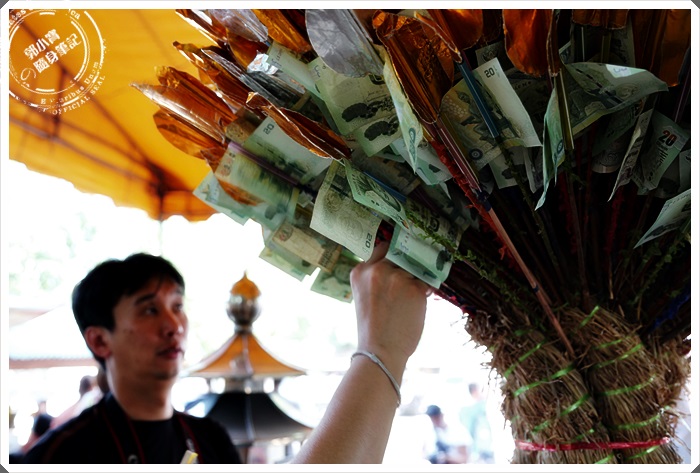 | 像一根箭的就直接插在這稻草上,很多信徒會在中間在夾上一張鈔票,大部分幾乎都有夾,但是我覺得拜拜只是心意,夾不夾都可以,同行的朋友幾乎都有夾上20元的鈔票,還有人大手筆夾上100大洋,夾完後就可以去拜拜了@@ |