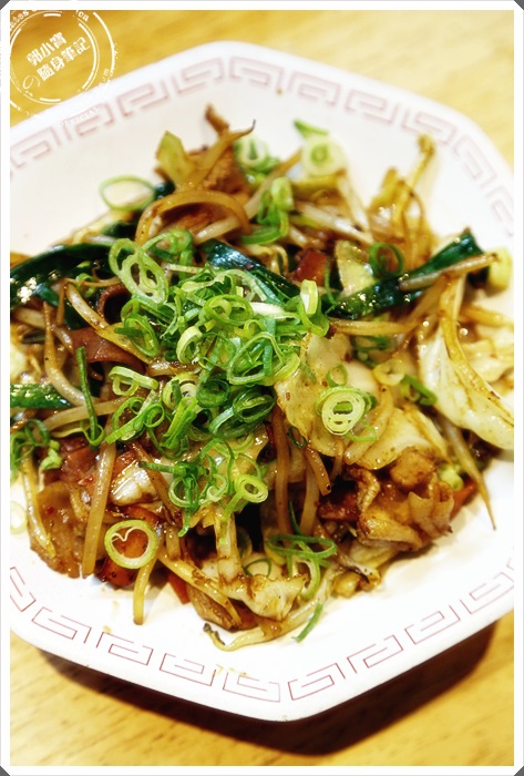 因為我們點的是套餐,拉麵加上一盤豬肉炒野菜,還附贈一碗白飯,野菜炒的頗有台灣味。