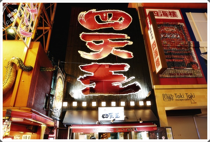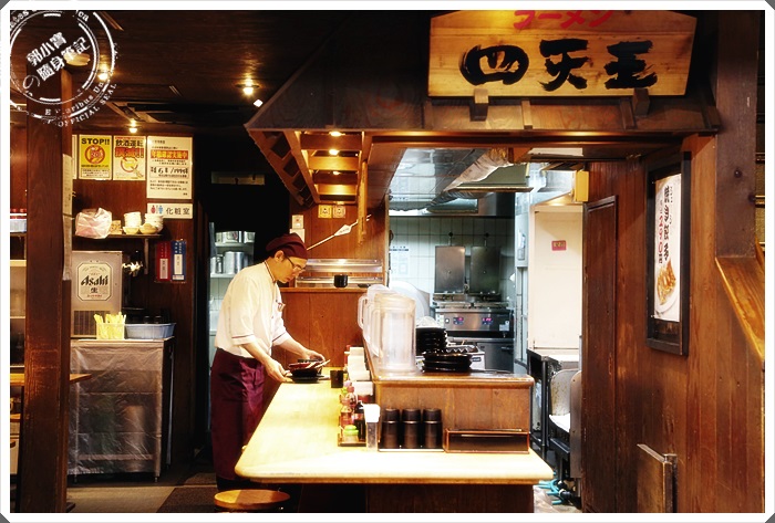 曾經我也非常的抗拒四天王拉麵,因為某次已經在門口徘迴不知道到底要不要進去吃的時候,突然出來了一組台灣客人,劈頭跟說真的有夠難吃的,造成了我很大的陰影,隔了一年多好幾次去大阪玩都沒有想過要進去理麵吃過,後來常常在幾個日本廚藝大師的解說下,才慢慢了解了日本拉麵的文化,基本上沒有不好吃的拉麵,只有不合妳胃口的拉麵,久而久之就慢慢了解了這句話了,從以前吃拉麵吃到現在,細細的回想這一切發現真的沒錯,我吃不慣的拉麵店偏偏生意也是很好,我覺得好吃的偏偏生意沒那麼好,那只是因為文化上的差異跟在地生活的口味習慣問題,所以在最近了解這個道理的時候,再次來到大阪的時候,我就找了一個時間來收復這一家四天王拉麵,因為道頓堀附近比較有名的拉麵都吃得差不多了,就剩這一下還沒吃過!!!