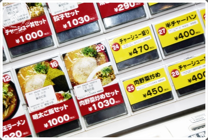 | 食眷機放在店門口外,先把要吃的東西挑選好,付完帳後拿著票劵進去給吧檯裡面的師父就可以了,四天王拉麵的選擇似乎非常多,多到有一點我都不太知道什麼是招牌了。 |