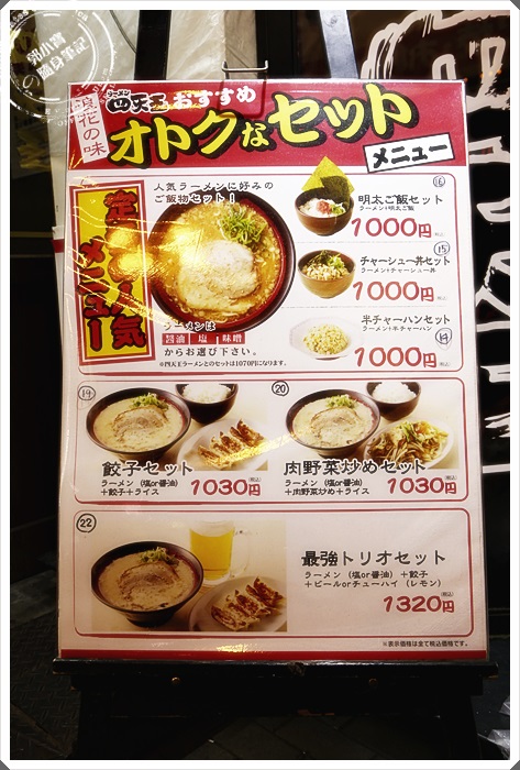 四天王在道頓掘這邊也是24小時營業的,所以是選了一天消夜的時候來吃的,因為其實日本拉麵的份量都不多,是很多日本人都會選擇拉麵店的原因。