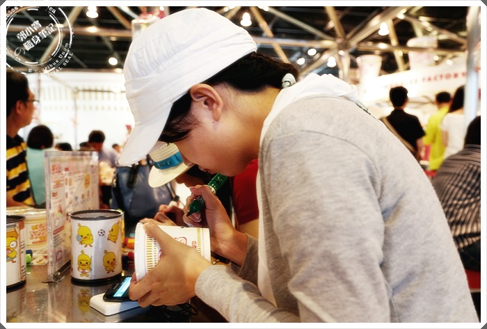 | 挑完後工作人員封膜經過熱風壓縮,一杯杯專屬自己的泡麵杯就出來了,其實等待的時間不會很長,一下子就結束了,其實每個人拿起屬於自己的泡麵杯的時候都非常的開心。 |