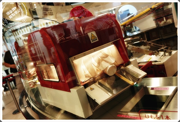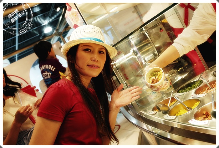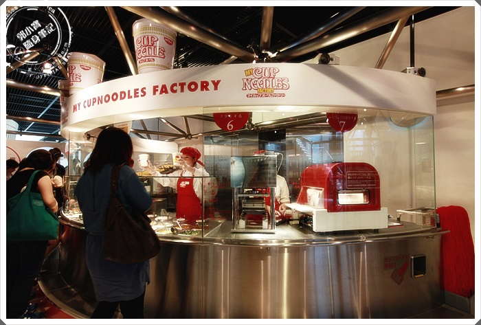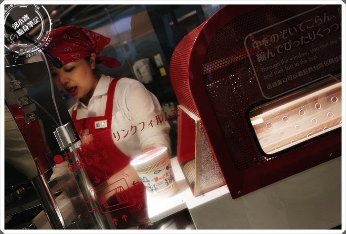 | 工作人員會跟客人用互動式的方法,讓你自己捲泡麵杯的麵體,麵體在封膜前工作人員就幫妳放進去了 |