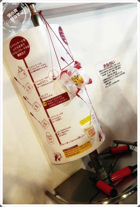 接下來就是去旁邊打氣,把泡麵杯包裹在氣袋裡面。