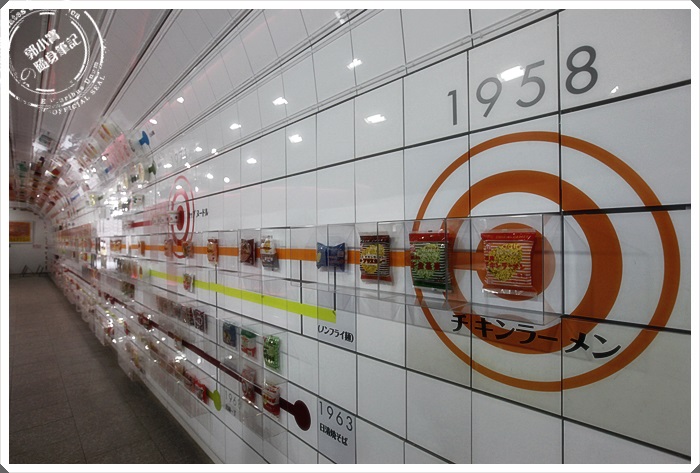 | 幾乎每個遊客都要合照的泡麵牆,日清泡麵從1958年開始創立到現在已經50幾個年頭了,原來泡麵才50幾個年頭,我一開始以為會更久耶。 |