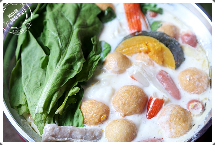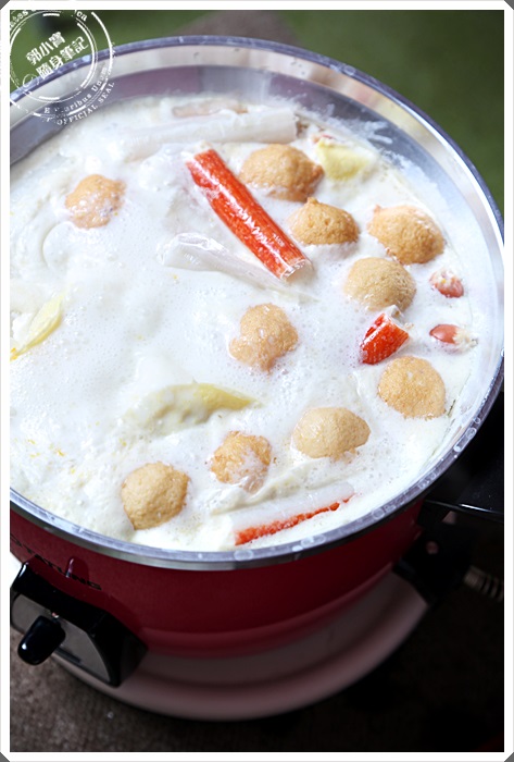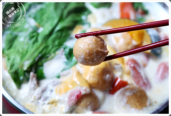 | 其實還在拍照的時候,我真的就忍不住的吃了超多的黃金球跟燕餃,魚餃搭配牛奶鍋也超好吃,一整個顧不得照片還沒拍完,幾乎是一邊拍一邊偷吃的情況下進行的,可以想像滿房間的牛奶香氣加上火鍋料在鍋裡面跳動的感覺嗎?? 那真的是無限地獄!!! |