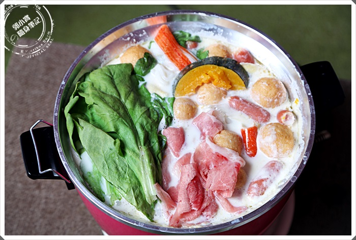 再放進蔬菜跟豬肉,一整個就比外面餐廳的牛奶鍋還豪華,完全終極版的牛奶鍋!!!!