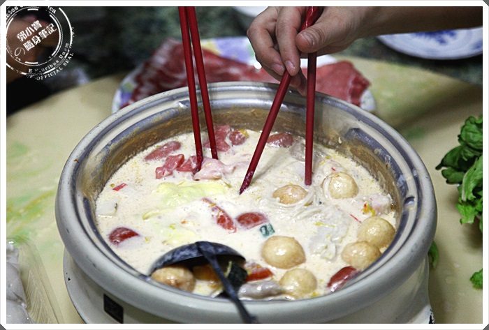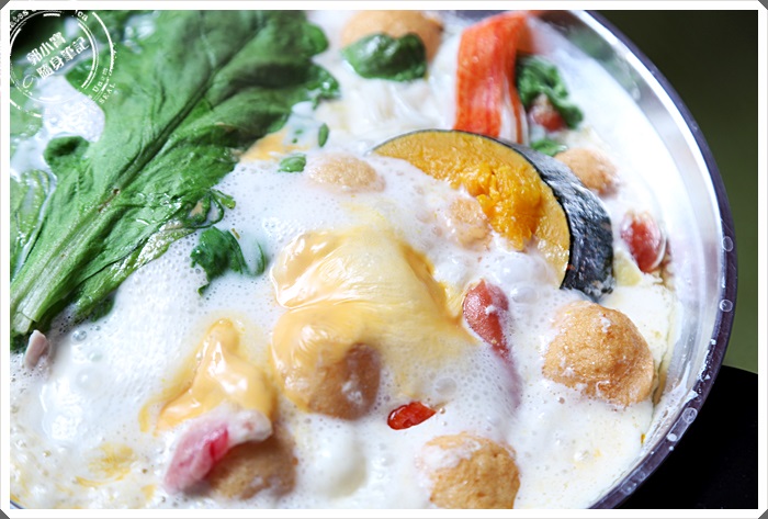 基本上我選擇的兩款豬肉都帶有油花的部分,除了讓油脂跟牛奶湯頭結合,讓湯頭喝起來更滑順美味以外,因為牛奶鍋的關係,所以讓肥肉比較多的豬肉吃起來也相對的爽口。 |