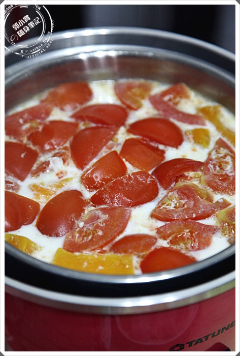 起司牛奶鍋其實真的要搭配電鍋來烹煮,因為牛奶鍋都是100%倒牛奶進去的,為了不讓原湯口味因為爐火的蒸發而一直變濃變淡,所以電鍋的隔水加熱法是最適合的,調整好的湯頭不會因為爐火的關係讓比例跑掉。 |