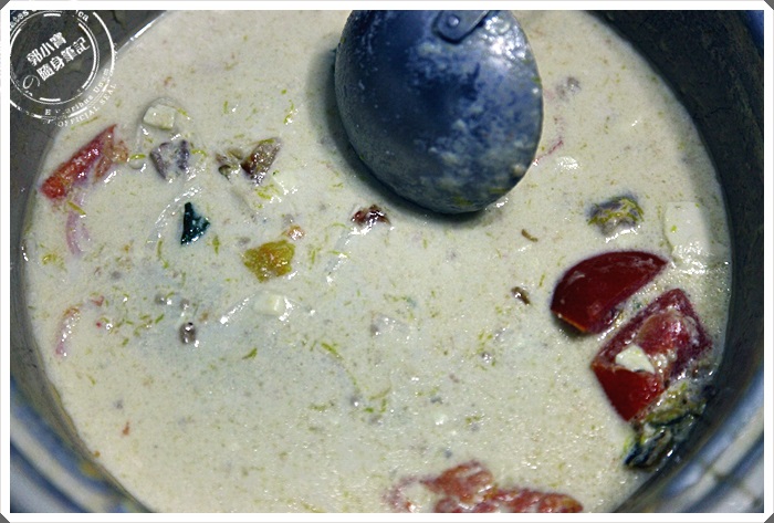 | 起司融化後就可以開動了,喝了一口湯頭就感覺到好溫暖,開動之前每個人都是因為聞到牛奶鍋的味道真的太香了受不了,每個人喝到都說這湯頭超讚的,甜中帶鹹,鹹中帶香,幾乎每個人都喝了好幾碗湯暖胃,因為南瓜下的相當的多,熬到最後南瓜幾乎都不見了,都已經煮到變泥跟牛奶混和在一起了,喝湯的時候就可以喝到相當濃郁的南瓜甜味,有點沙沙的口感就是南瓜泥,帶著牛番茄的清甜與食材肉品的鹹香。 |