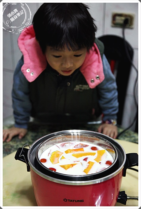 知道今天晚上要吃牛奶鍋的小鬼頭超開心的,一直等在旁邊準備開動了。