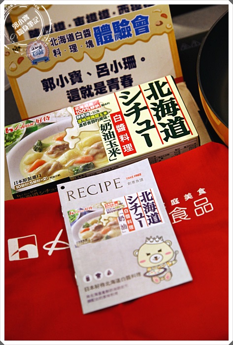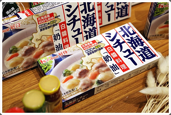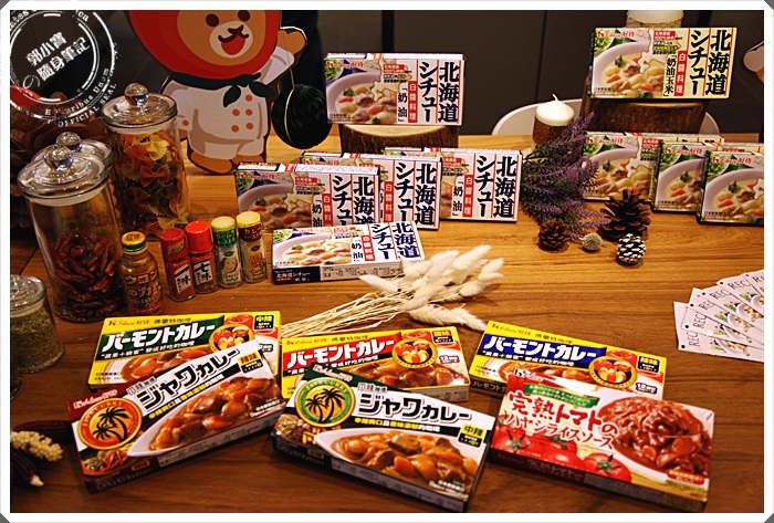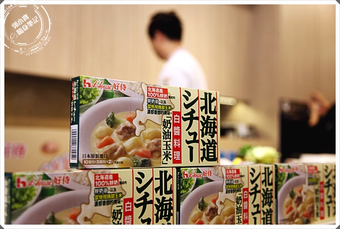 | 桌上除了放滿了House好侍食品的各項商品以外,還有今日主廚的一些運用北海道白醬料理湯塊的料理,桌面上這一些其實都是滿簡單的,使用過House好侍食品的佛蒙特咖哩的人大概都知道步驟,白醬料理的步驟其實跟咖哩差不多多少。 |
