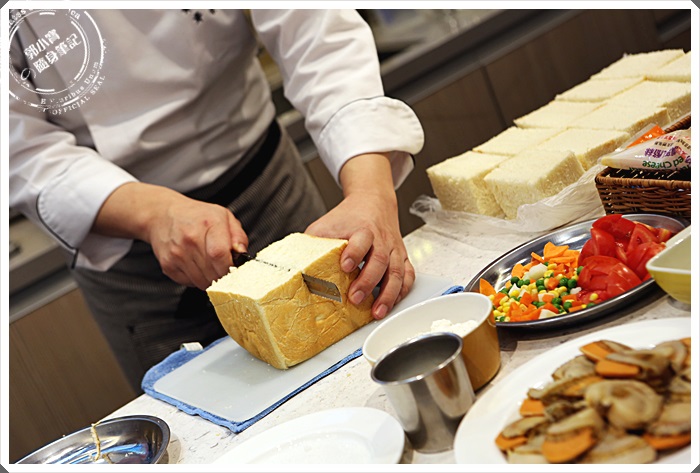 | 一聲令下後,大夥馬上都超認真的在製作自己的蜜糖吐司的,當白醬奶油塊下鍋的時候,整個空間都飄散著超濃郁的奶油白醬味,光聞著那味道我的肚子就開始狂叫了。 |
