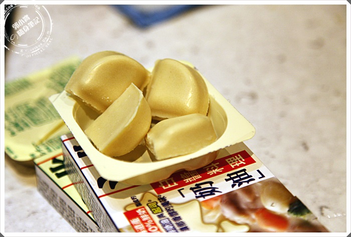 使用湯塊其實很簡單,每一盒北海道白醬湯塊裡面有兩盒,每一盒有四塊,不用費心的打開包裝後又折又切的,像Becky小姐這樣不沾手的拿著盒子直接折,保證裡面就是漂漂亮亮的四塊分裝好了,不沾手又免動刀XD |