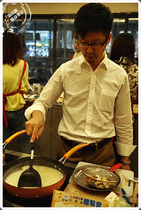 | 當我們都吃的差不多的時候,轉頭突然發現小林先生默默的在一旁也煮了起來,可能是因為這教室真的是太香了,自己就默默的煮了起來,但是她連煮白醬的表情都超認真的,日本人做料理的表情都無比認真(握拳)!!!! |
