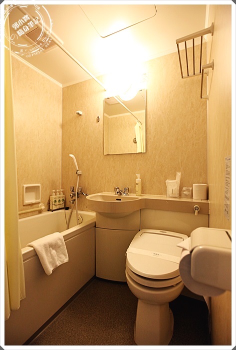 | 廁所也滿大間的,除了有免治馬桶以外,可以在半夜起來上廁所不會讓屁屁冷冰冰的以外,重點還有一個大浴缸可以泡澡,對於日本很多商旅的浴缸都小了一點來說,這邊的浴缸算大的了。 |