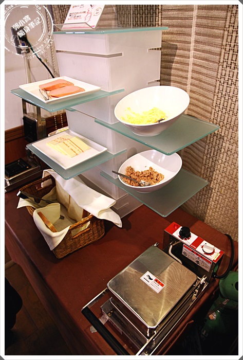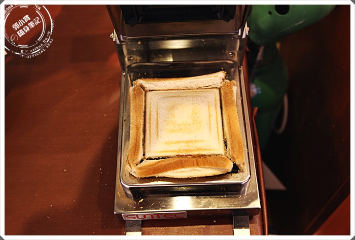 自己喜歡甚麼料自己加,利用旁邊那一台熱壓吐司機自己用力一按,就會自動去邊烤出香噴噴的熱壓吐司了。 |