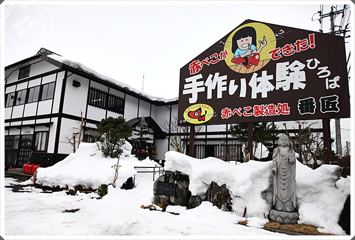這天起了個大早準備吃完早餐後就直奔會津地區最有名的鶴城,也就是大家口中俗稱的若松城,因為當天的風雪真的有點大,後來決定直接叫包車一路玩下去,再前往若松城的途中,還安排了一個小活動,就是這地區很多人都會來這邊親手彩繪的小活動,其實每到旅程的途中與其自己買當地的特色祭念物品,倒不如自己親手做一個當地的特色商品更來的有保存價值,而這家就是以彩繪福島吉祥物赤牛知名的體驗工房。