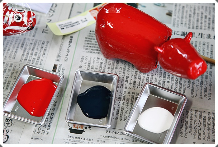 除了福島當地的吉祥物赤牛以外,其實可以選擇彩繪的商品還滿多樣化的,也有不倒翁跟其他裝飾物的商品,而且你也可以照自己喜愛的色彩去彩繪商品。