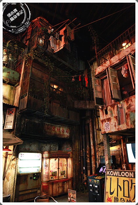 | 踏進了裡面第一個感覺就是我真的來到另一個世界了,老舊的街道跟熟悉的繁體字,怎可以復刻的那麼的完整,心裡面只能默默的說日本人真的太厲害了,如果是電玩迷真的會愛死這個地方的,一樓的部分會出現很多聲音,耳邊出現的是炒菜的聲音跟很多香港人對話的內容,瀰漫著一股相當詭異的氣息,雜亂的管線跟破舊的磚牆超有感覺的!! |