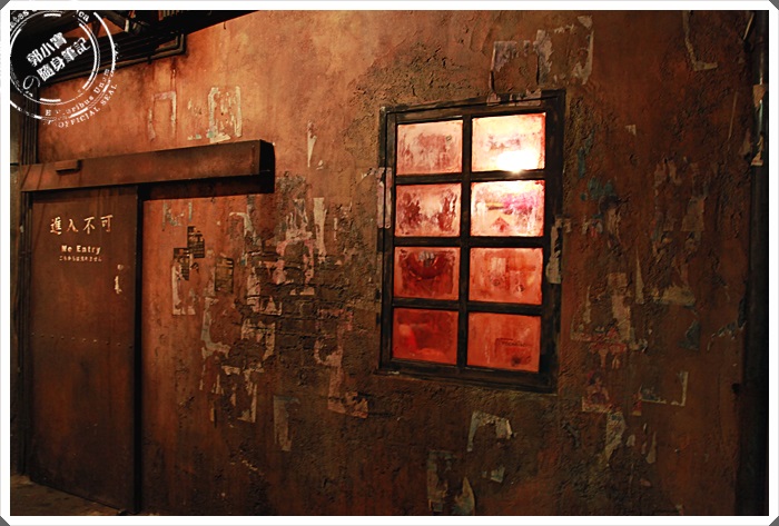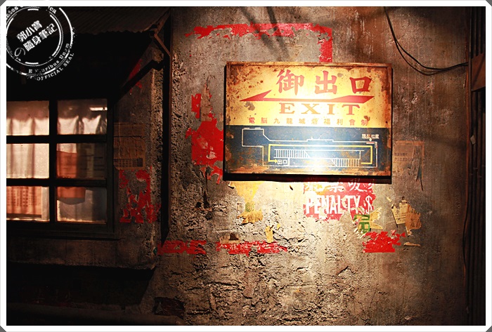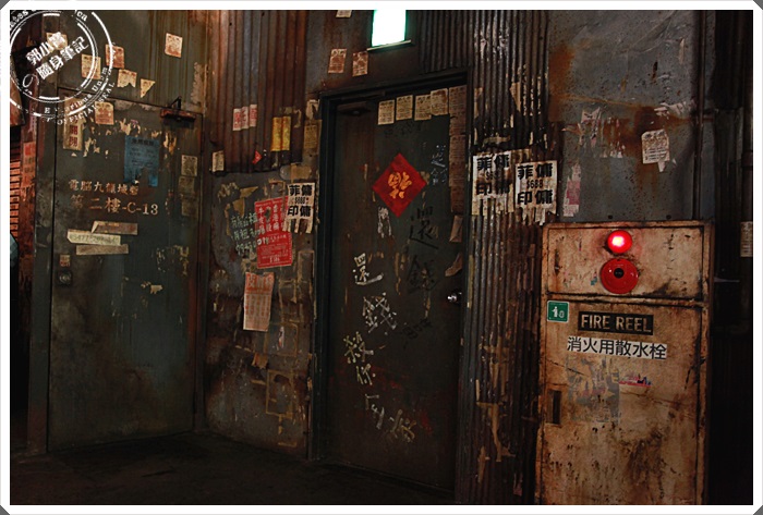 | 昏暗的燈光跟關閉的鐵門完整的重現出當初九龍城寨內部的狹小通道跟髒亂的居住環境,走在這小路上真的會心慌慌的,但是還是抑制不住內心的興奮,九龍城寨在1990年被拆除完畢,最後的身影只有在成龍的重案組電影裡面有出現,現在可以親自走在九龍城寨的內部街道彷彿是夢境般。 |