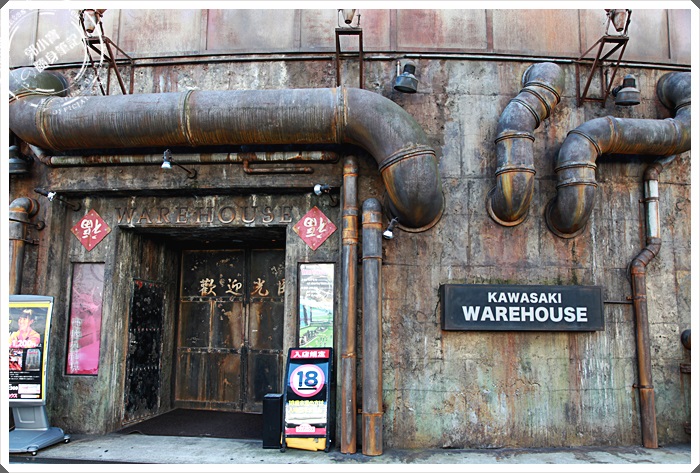 WAREHOUSE川崎店本身是一座遊樂場,就像是台灣的快樂龍系列的感覺,只是川崎店相當的特別,為了完整復刻出香港九龍城的感覺,連整棟大樓外牆都是特別讓它呈現相當老舊的感覺,整棟大樓的鐵鏽都模仿的相當逼真,感覺就像是一棟舊大樓。