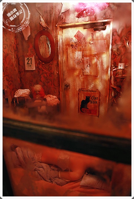 | 我湊眼過去瞧的時後第一個反應就是裡面有人,嚇的我倒退三步,然後鎮定後再仔細往裡面一橋,原來是一個假人躺在上面,這房間呈現出來的就是當初九龍城寨的情色場所,我只能說她還運作了日本超逼真的充氣娃娃@@ |