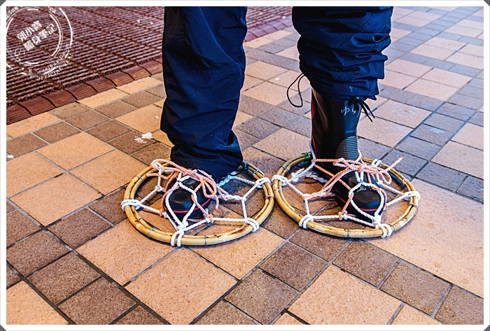 | 還可以體驗到在雪深及膝依然可以讓你行動自如的草履,這是日本古代的智慧,讓人可以輕鬆的在大雪中行走的小工具,套上這草履真的跟平常走路沒有甚麼兩樣。 |