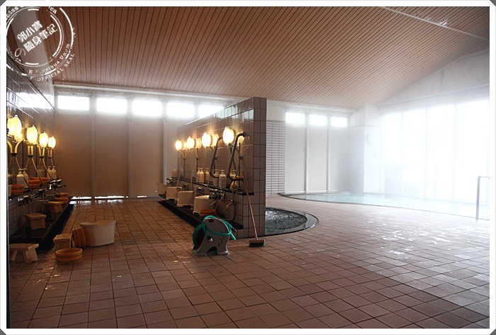 | 其中一間溫泉池的室內空間,除了有淋浴設備以外,還有一個可以看到窗外的溫泉池,因為蒸氣真的太多,所以並不是那麼的好拍,拍起來有一點的模糊。 |