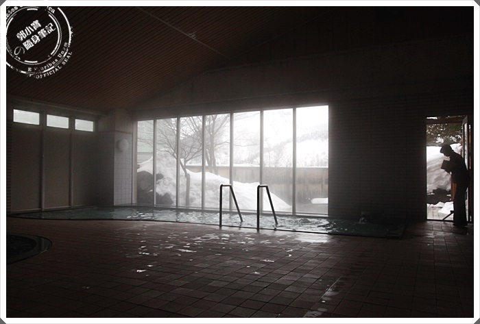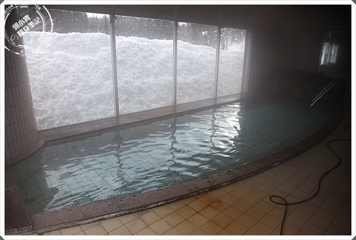| 另外一個溫泉池不管室內外看起來池子都相對大了許多,風景視野也比較好,但是室內的部分其實都差不多了,因為大雪幾乎蓋住了整個落地窗XD |