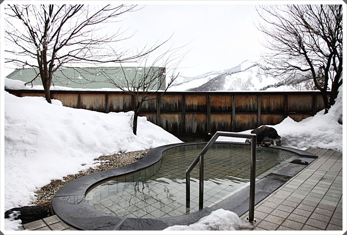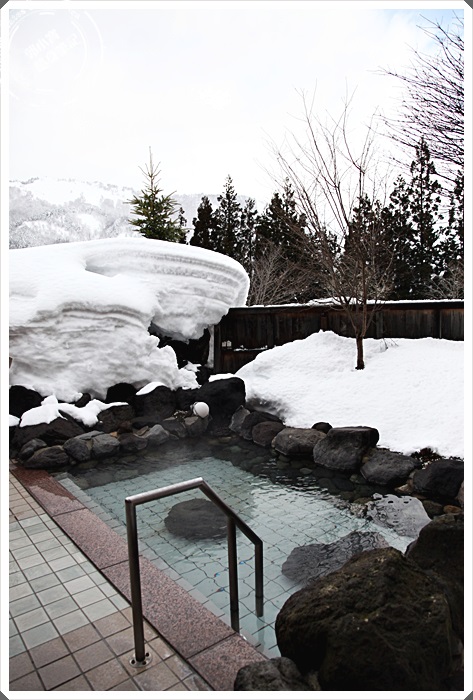 | 大雪中的戶外池泡起來真的格外的快樂,尤其邊下雪邊泡湯真的很舒服。 |